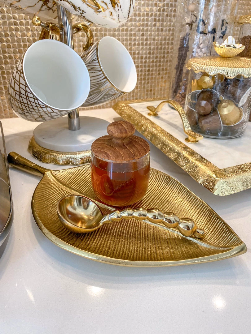 Description: This gorgeous gold tray is perfect for displaying our coasters, candles or snacks!
