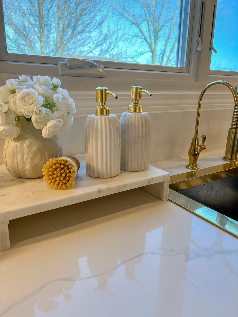Description: This is a gorgeous marble soap or lotion pump and will make a statement in your bathroom or kitchen. We are in love with this design.