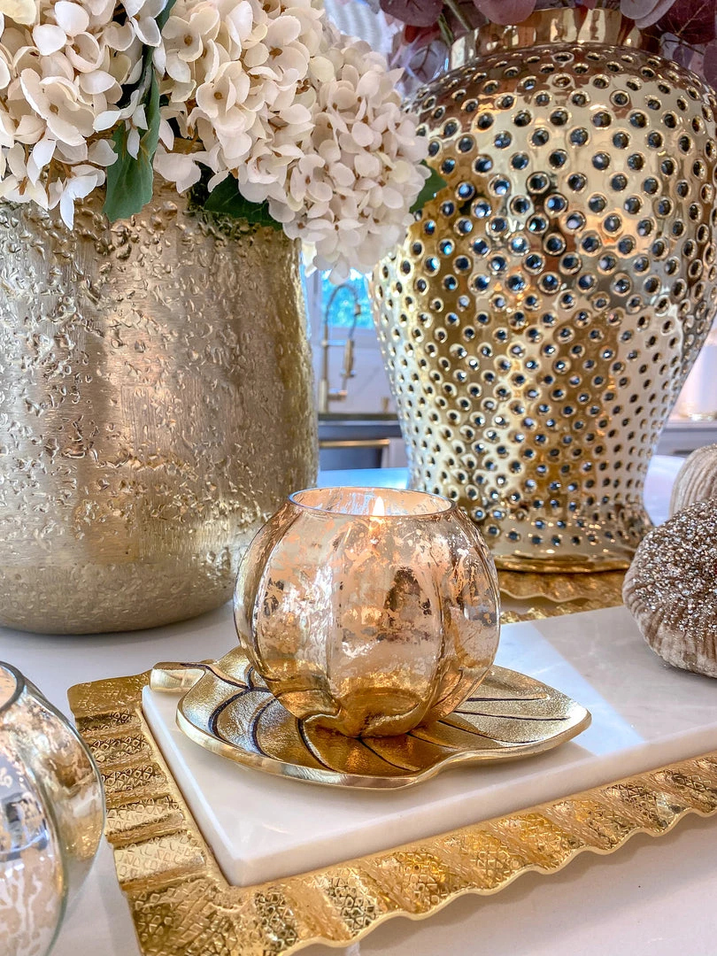 Description: This mercury glass candle offers a perfect blend of glam and traditional styles! Featuring the warm scent of rustic pumpkin, this is perfect to create the fall feeling in your home!