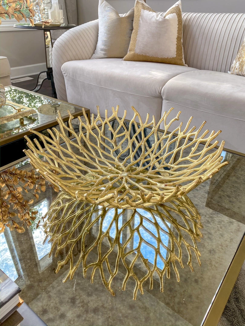 Description: These metal gold branch bowls bring such an interesting and natural feel to your decor! They are perfect to style your fall pumpkins in and come in 2 sizes!!