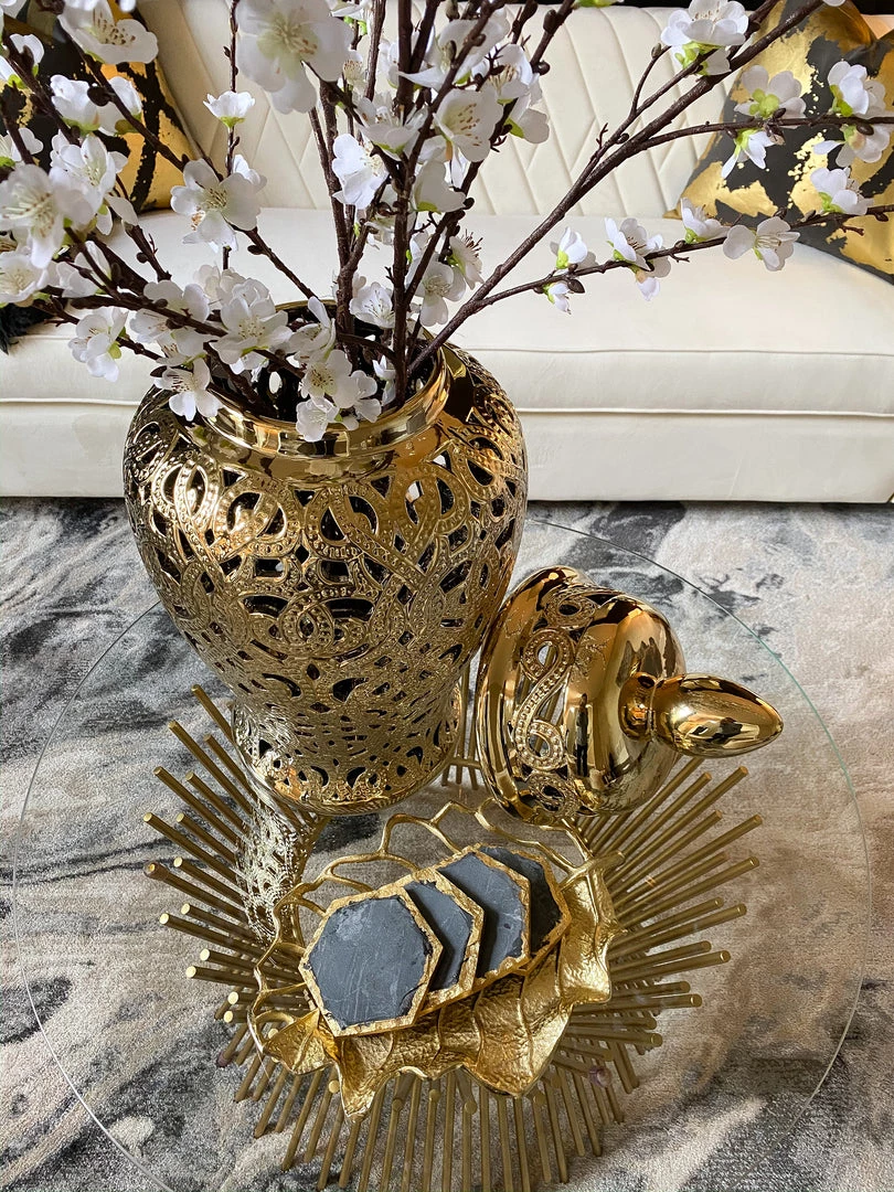 Inspire Me! Home Decor White Ceramic Candle Holder With Gold Elegant Details (2 Sizes)