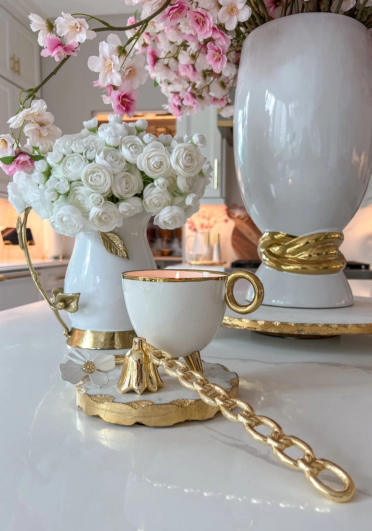 Inspire Me! Home Decor White Ceramic Candle Holder With Gold Elegant Details (2 Sizes)