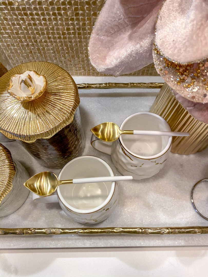 Description: Infuse any coffee station with these glamourous Gold Spoons with White Handles.