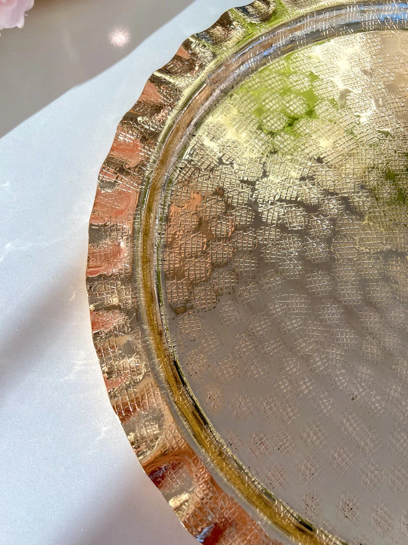 Description: This tray is absolutely stunning! The textured ruffle detail on the border of the tray adds a dramatic touch and will make the perfect base to your layered display!