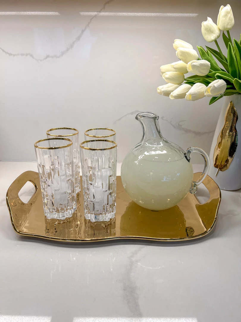 Description: This is one gorgeous gold serving tray. This one will wow your guests for sure!