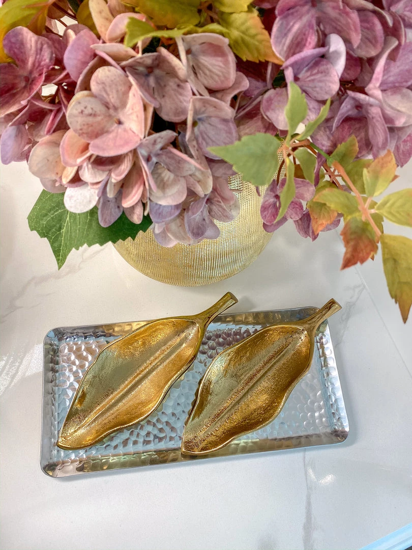 Description: This gorgeous gold tray is perfect for displaying our coasters, candles or snacks!