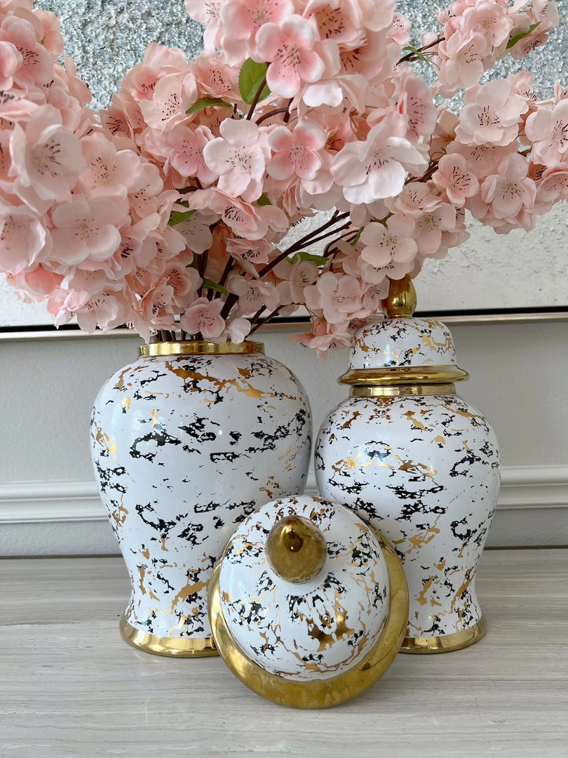 Description: This gorgeous ginger jar will look stunning on its own or filled with your favorite faux florals.