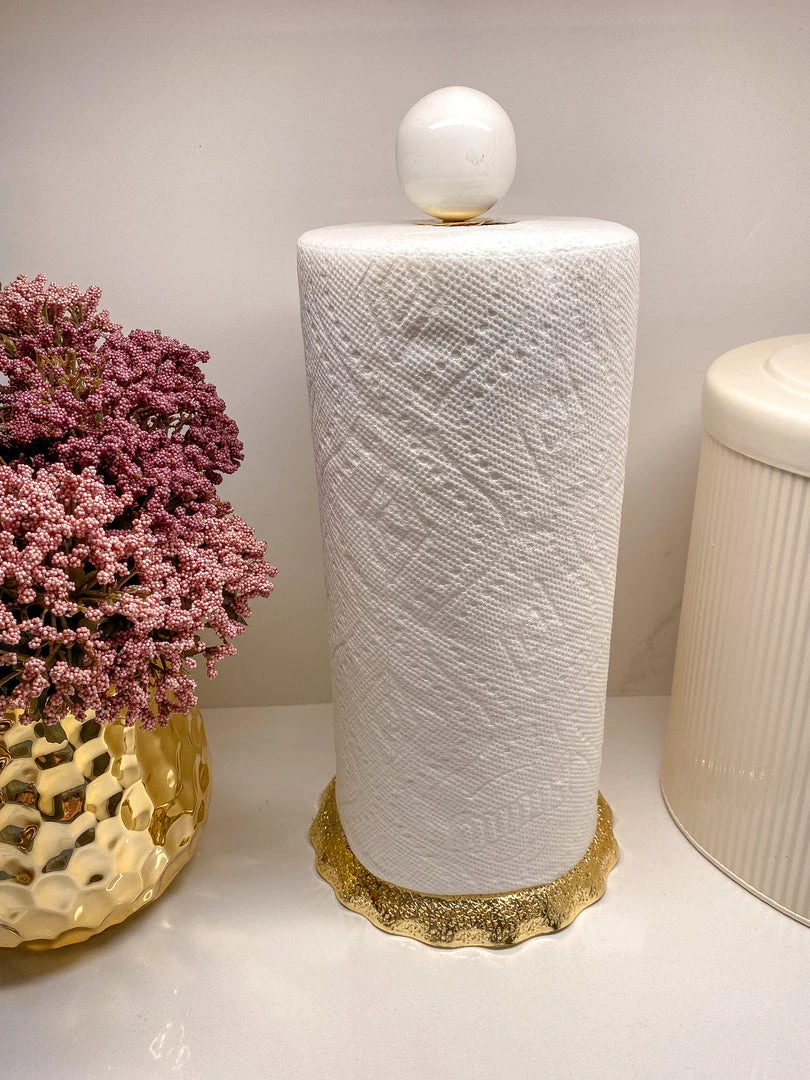 Description: This white top paper towel holder is a functional and glamorous addition to your countertop.