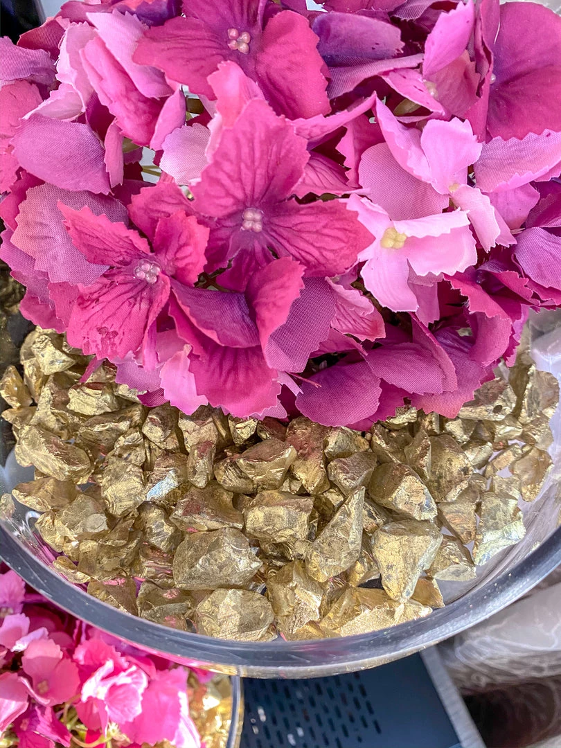 Description: This coarse crushed glass in gold is a perfect filler for any vase, also the perfect component for resin art creations.