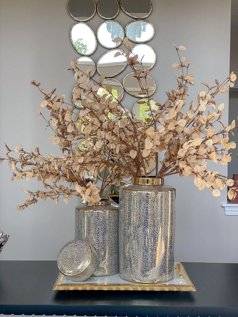 Description: These jars come with a sparkle of gold on each jar to catch and reflect the sunlight.