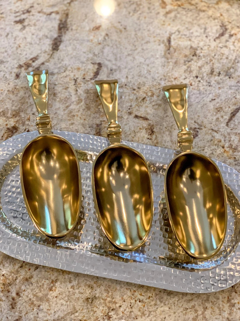 What a large beautiful gold scoop! It can be used for ice, flower, oatmeal, pancake mix or other snacks.