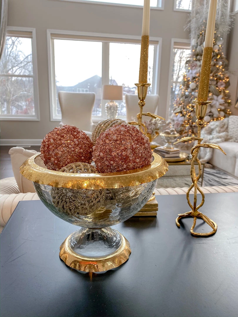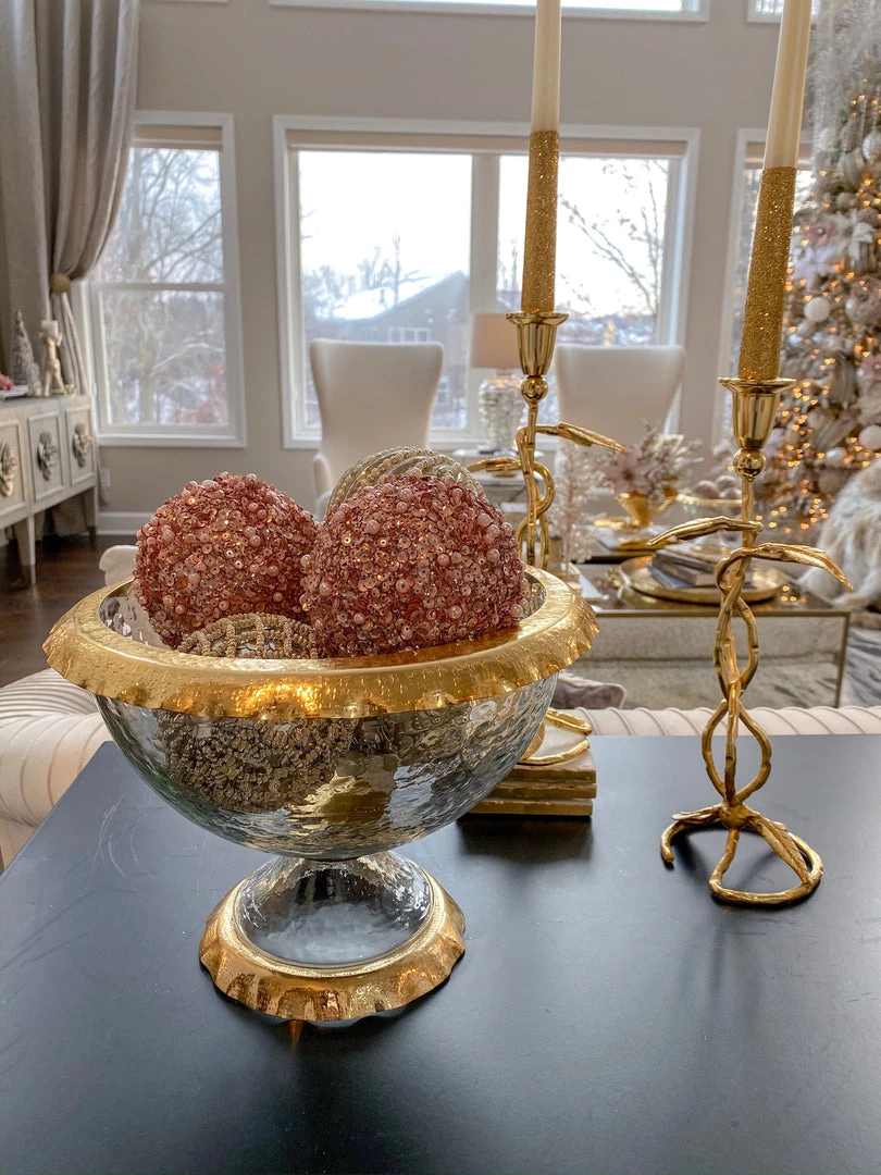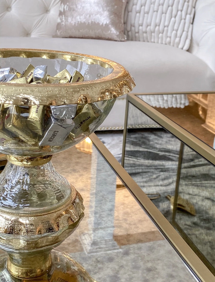 A unique piece, this glass and metal detailed bowl is perfect as a decorative bowl or as serve ware. Either way, wow your guests with this beautiful piece!