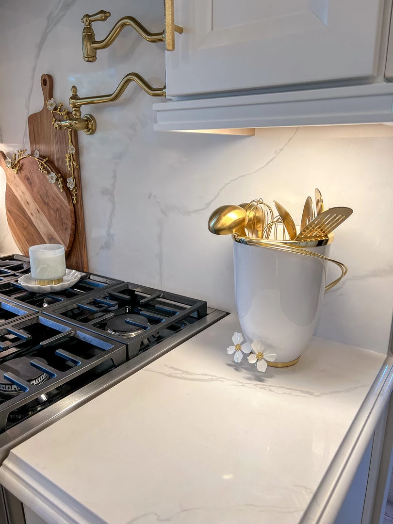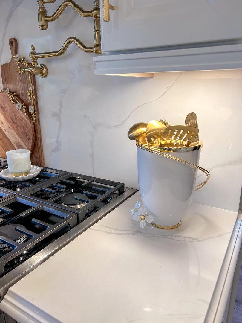 Inspire Me! Home Decor White Ceramic Candle Holder With Gold Elegant Details (2 Sizes)