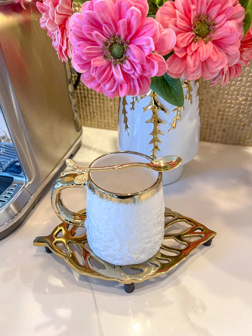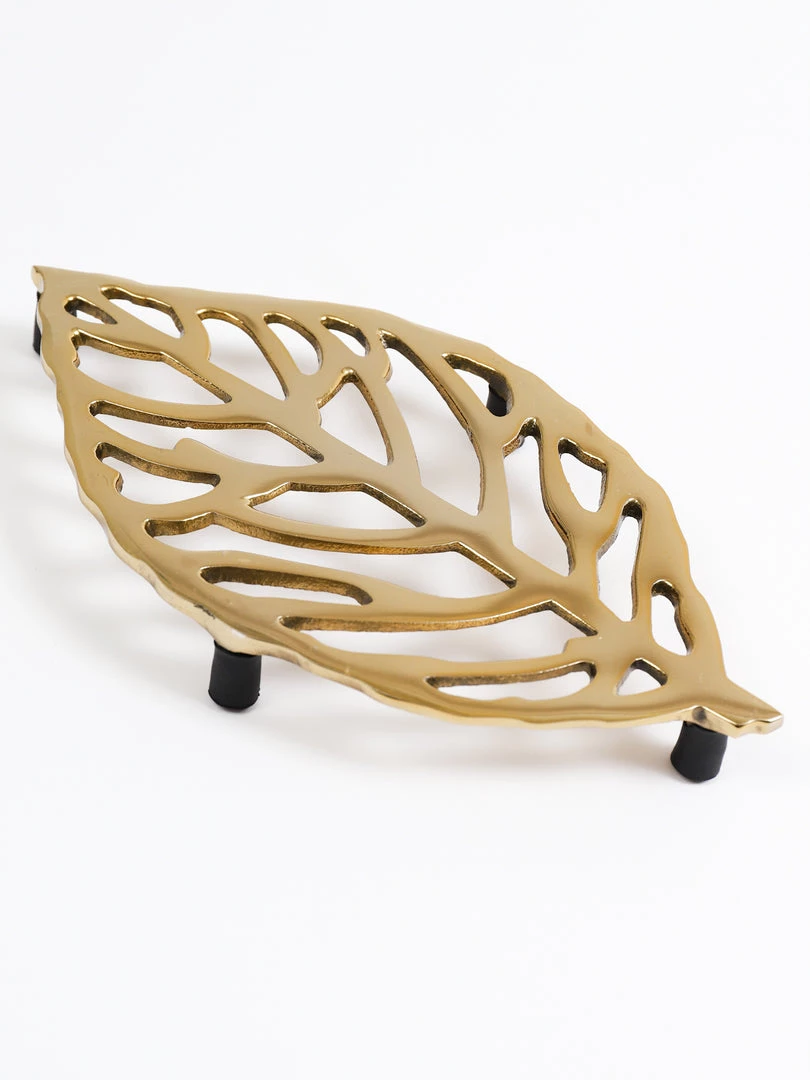 Description: This is a distressed metal trivet shaped like a leaf and is functional yet beautiful!