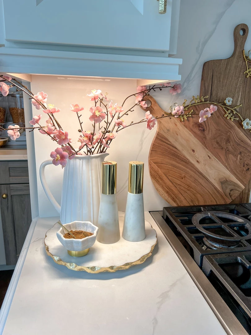 Inspire Me! Home Decor Rectangular Marble Tray With Cherry Blossom Details