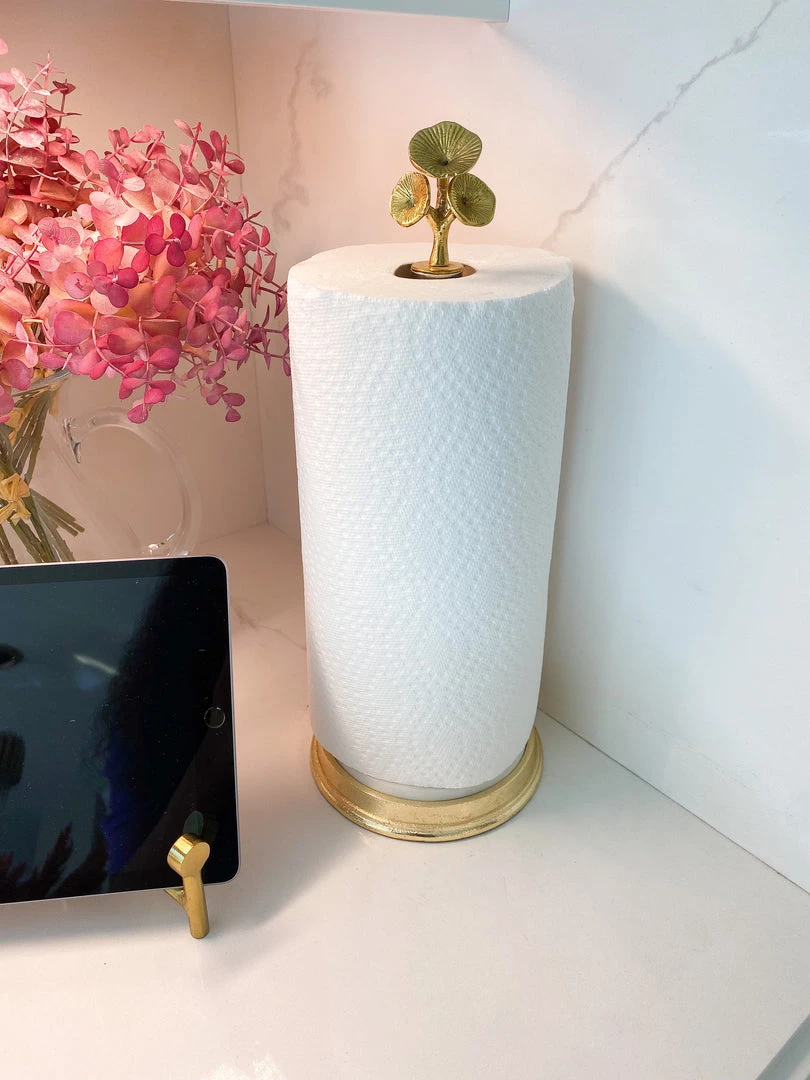 This stunning paper towel holder features marble and metal and will bring a little flare to your kitchen! We love the flowers on top to bring a natural touch to your home.