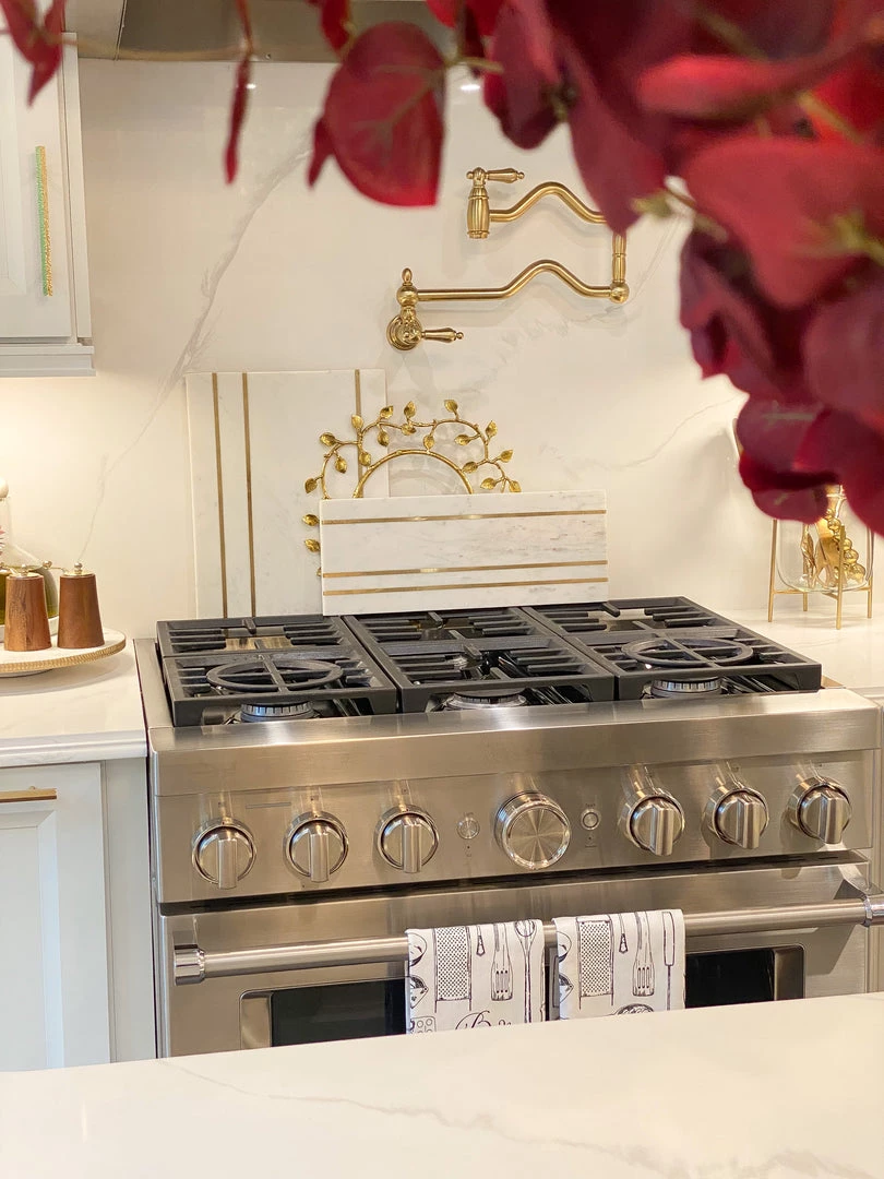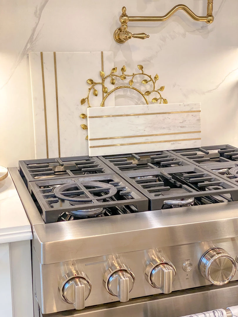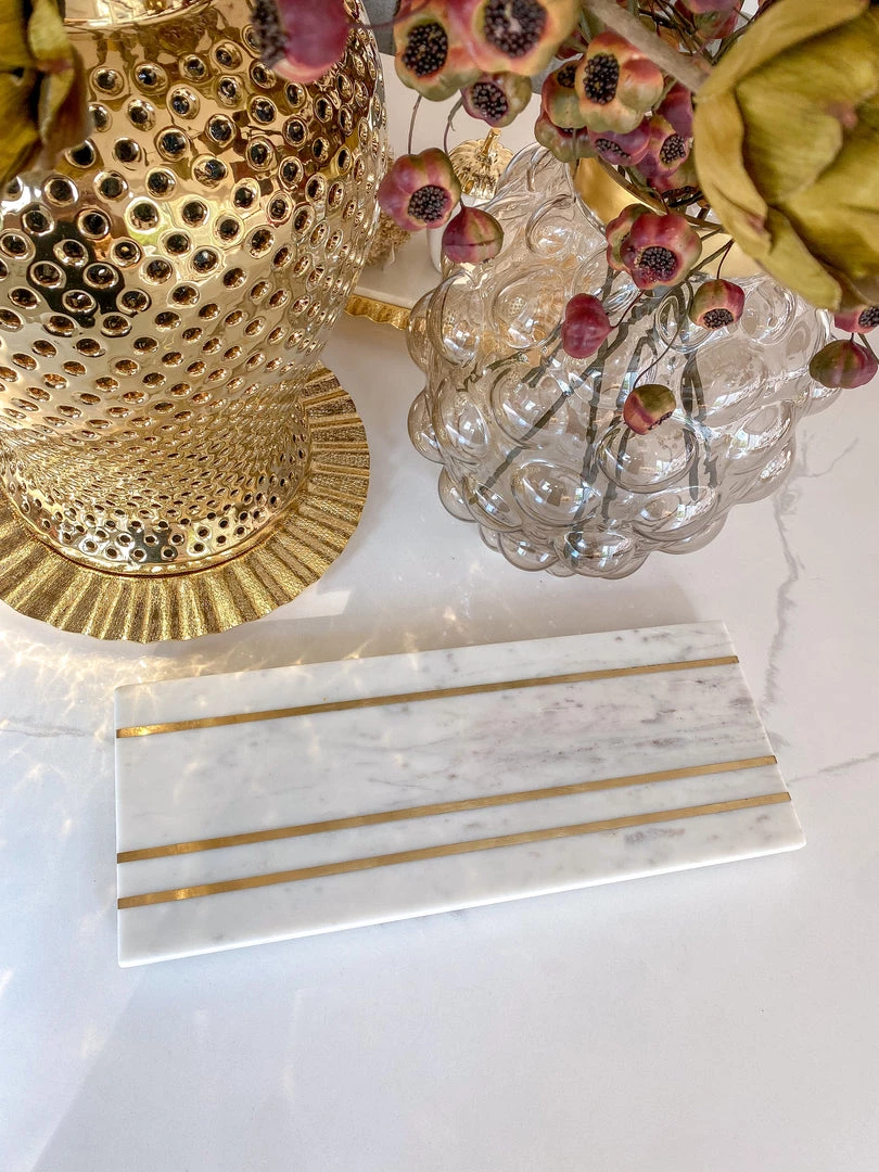 This marble board features beautiful gold inlay stripes and is perfect for styling with your decor, on your counter or under your favorite vignette!