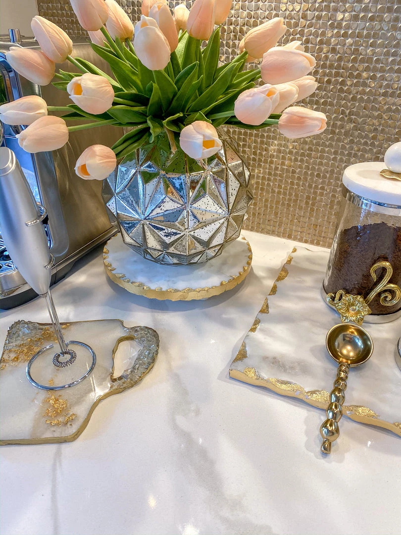 This marble trivet is perfect to display your appliances on your coffee station or to add to any vignette in your home!