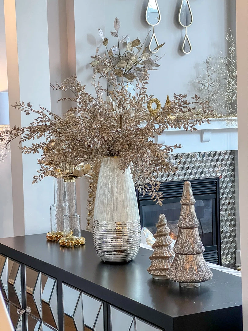 Description: This mercury glass tree with its neutral silver and gold coloring and beautiful glitter finish will instantly elevate any table or shelf as it shimmers in the light effortlessly.