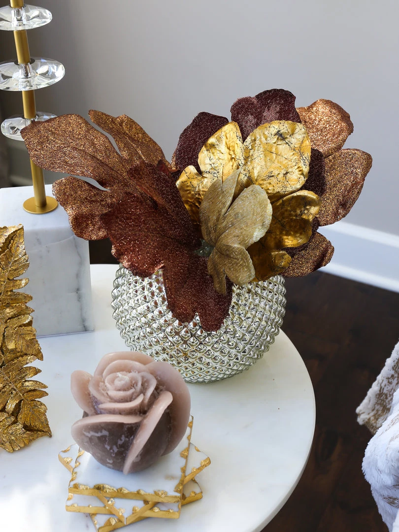 Description: These dazzling metalllic leaves are perfect for fall! The shimmering sparkle and the warm textures combine to create a truly unique and beautiful look!
