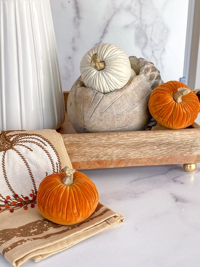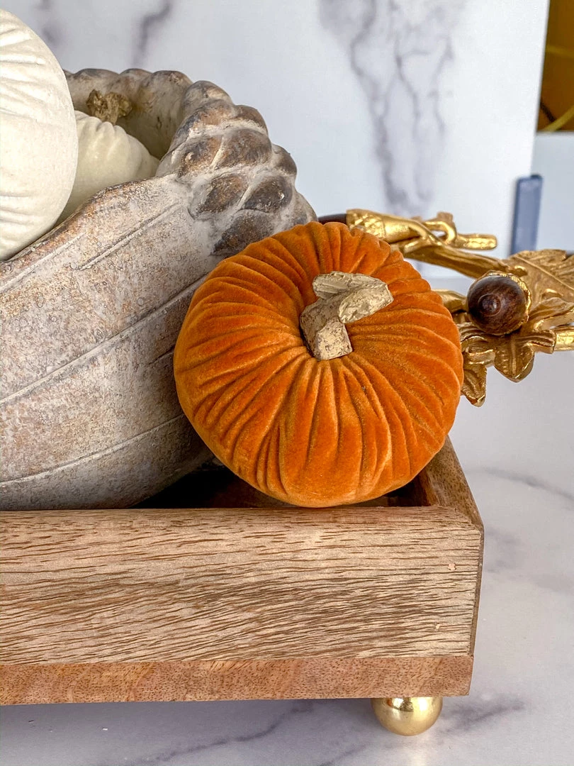 Description: These mini velvet pumpkins are the definition of fall! We love styling them in our bowls or on our trays! The traditional orange color rings true with the fall season.