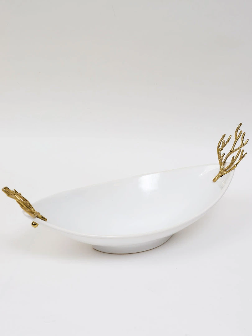 Description: This beautiful bowl is a great piece of elegant design. The gold textured details complements the glossy white ceramic to create a timeless sheer elegance and glam.