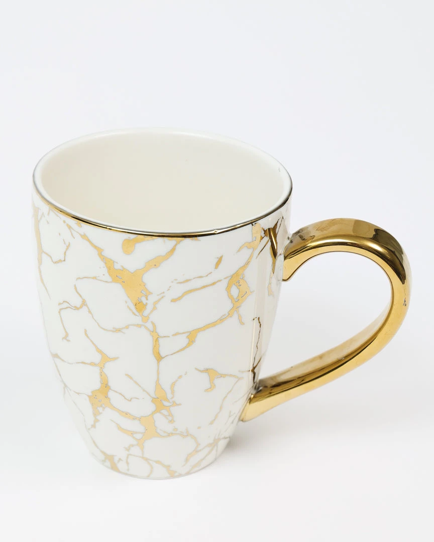 Description: This is a large gold and white swirl design mug and will look stunning on your coffee station!