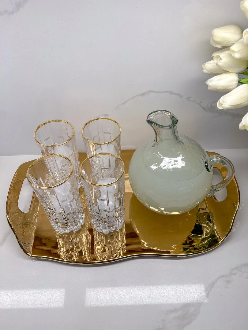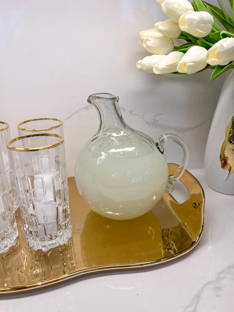 Description: This pebbled glass pitcher is such a cute way to serve your beverages!