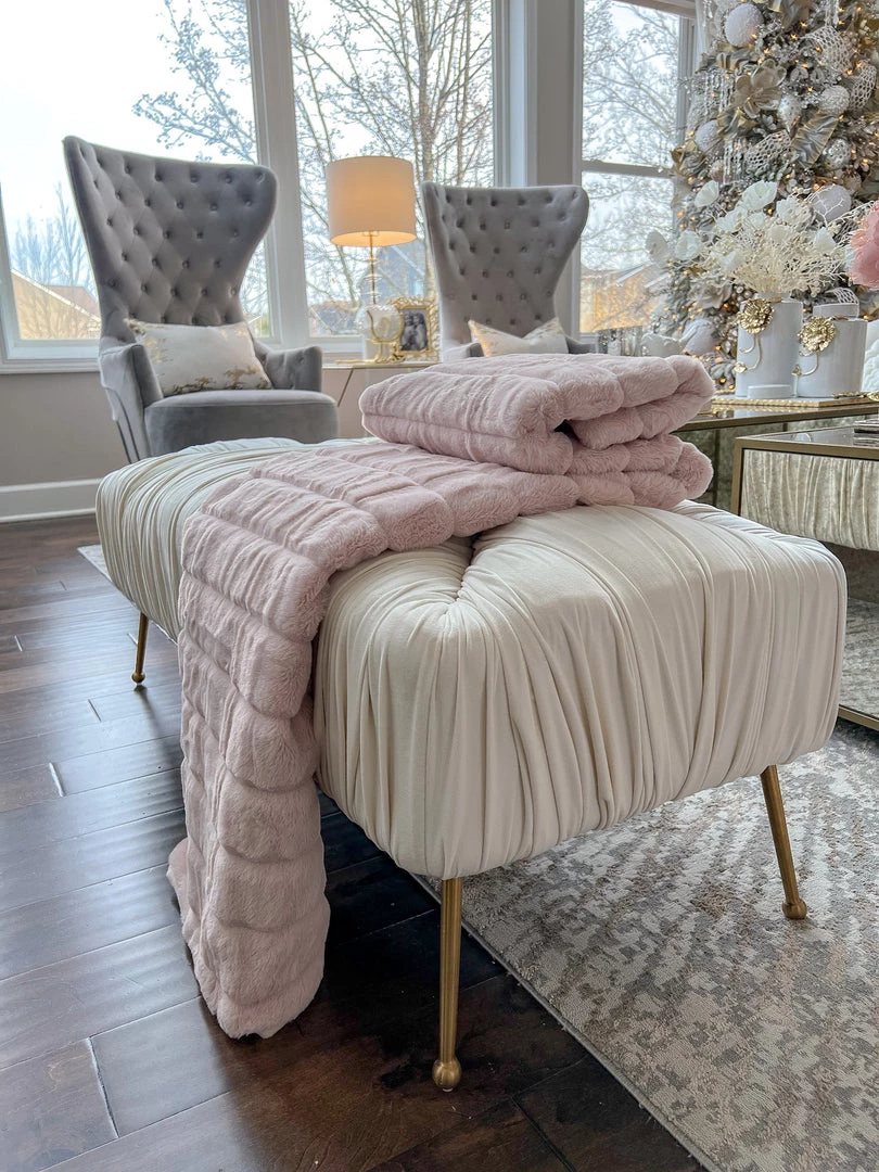 Description: This soft blush faux fur is perfect for these cold winter nights!