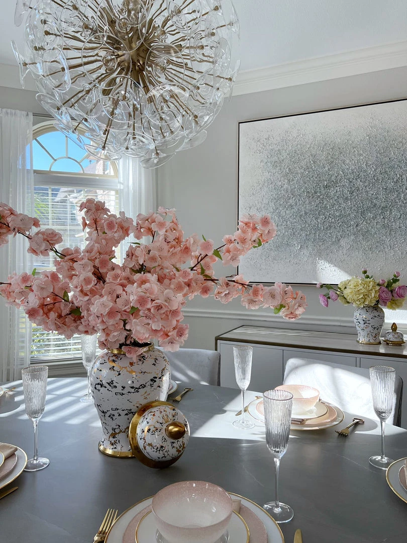 Inspire Me! Home Decor Large Rectangular Marble Tray With Cherry Blossom Details