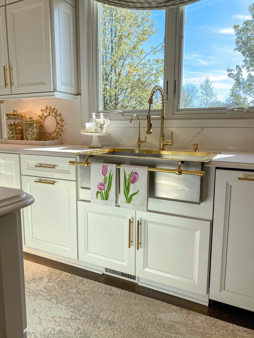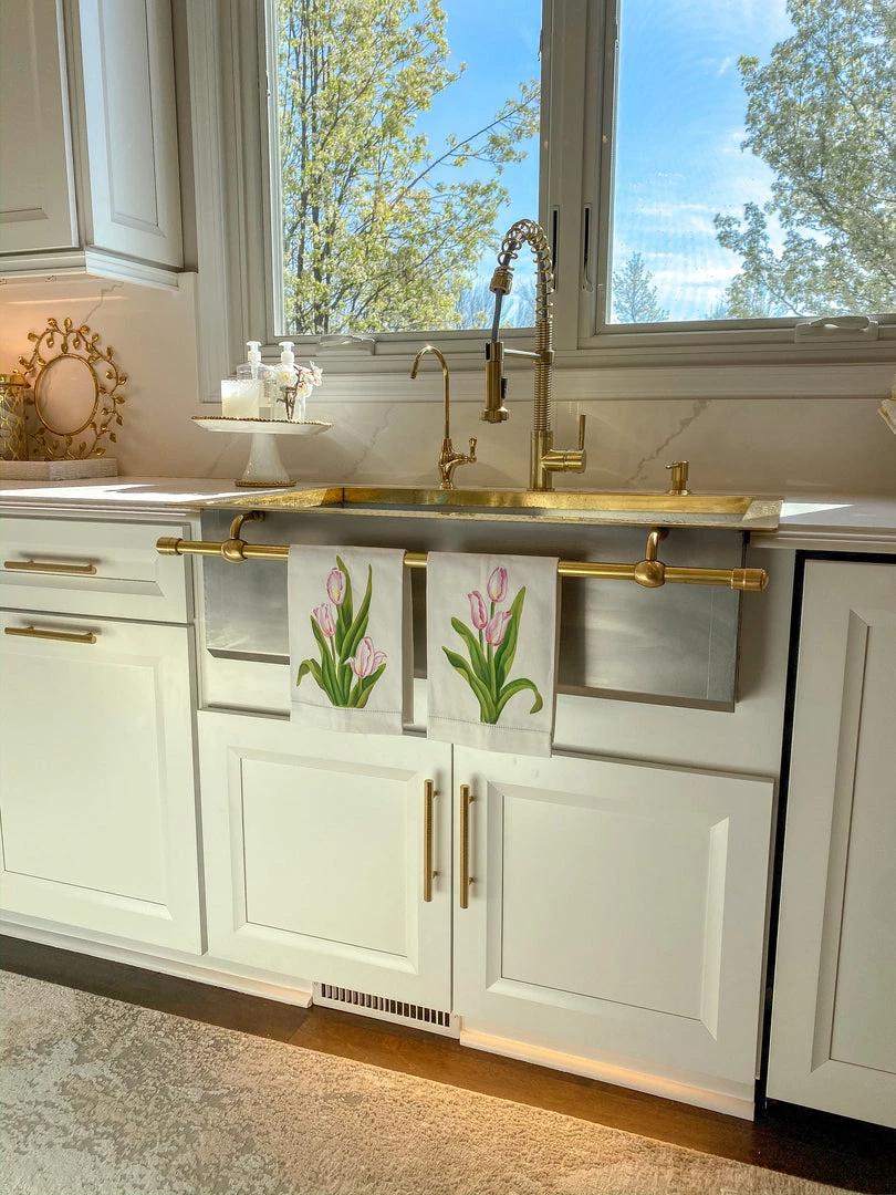 Description: These beautiful painted towels will add a fun touch of spring to your home! Made with a soft cotton and featuring the delicate designs of blooming tulips, these will make a lovely addition to your kitchen or bathroom display! Available in Light Pink or Dark Pink.