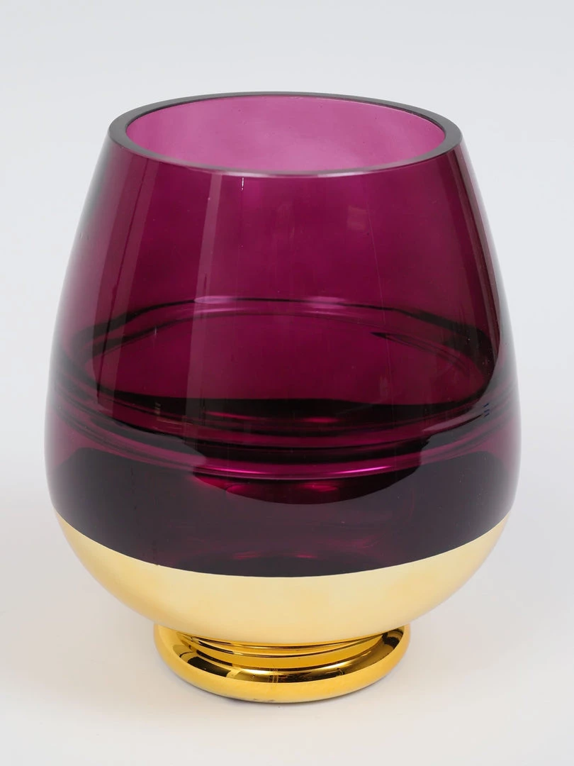 Description: The vibrant purple vase is simply beautiful with its golden base. Add a little pop of color just in time for Spring!