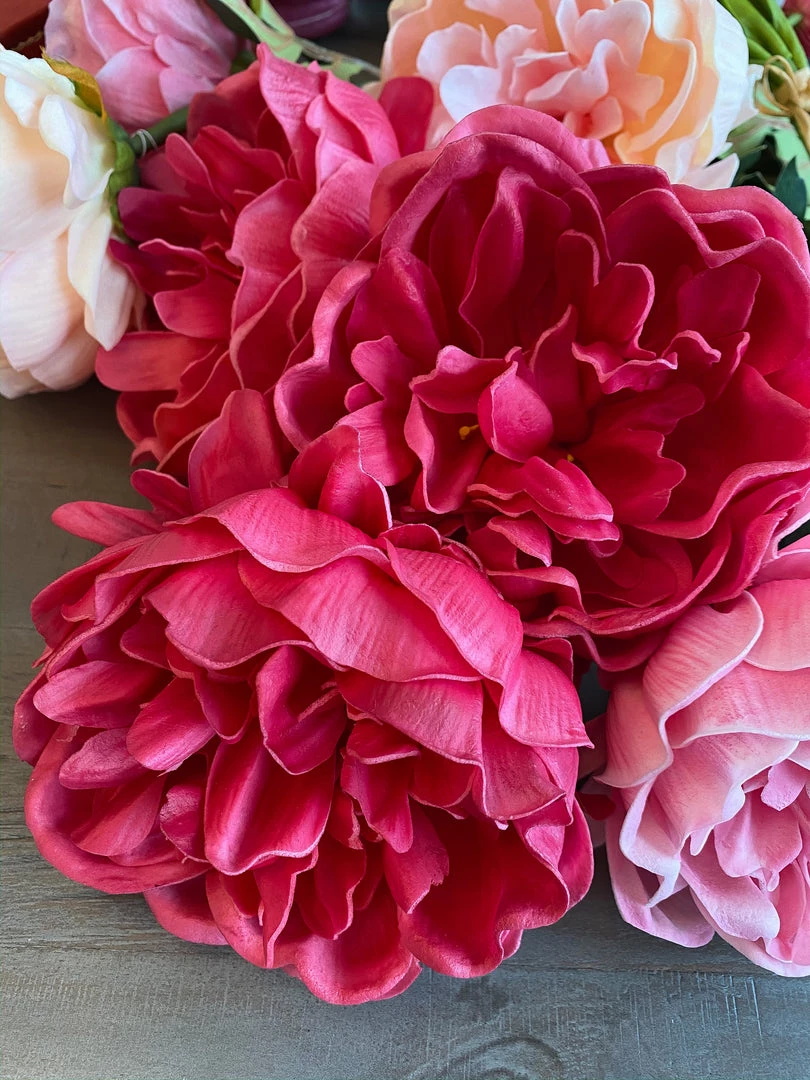 Description: These bright and beautiful peony stems! Comes in 3 different colors, these stems are a fun and lively addition to your spring floral collections!
