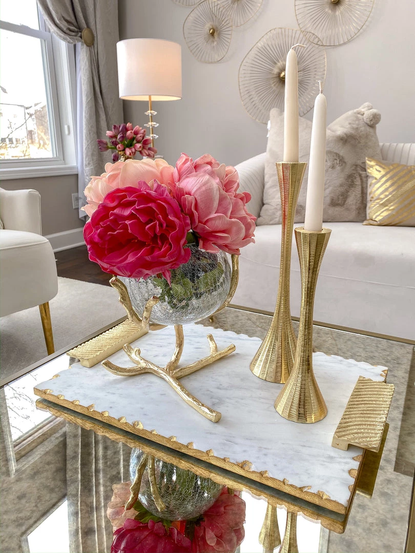 Inspire Me! Home Decor Gold Branch Centerpiece With 2 Glass Crackled Bowls