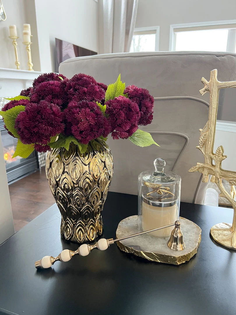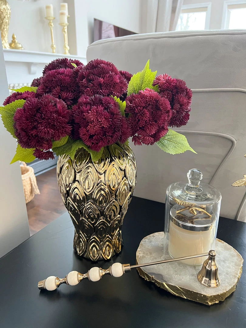Description: These real touch dramatic purple sedum stems will add a pop of color just in time for Spring! These elegant blooms add an element of texture to any floral arrangement.