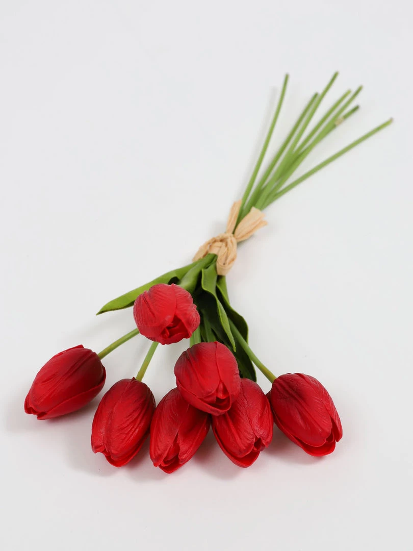 Description: These are 6 gorgeous real touch red tulips tied up in a bundle.