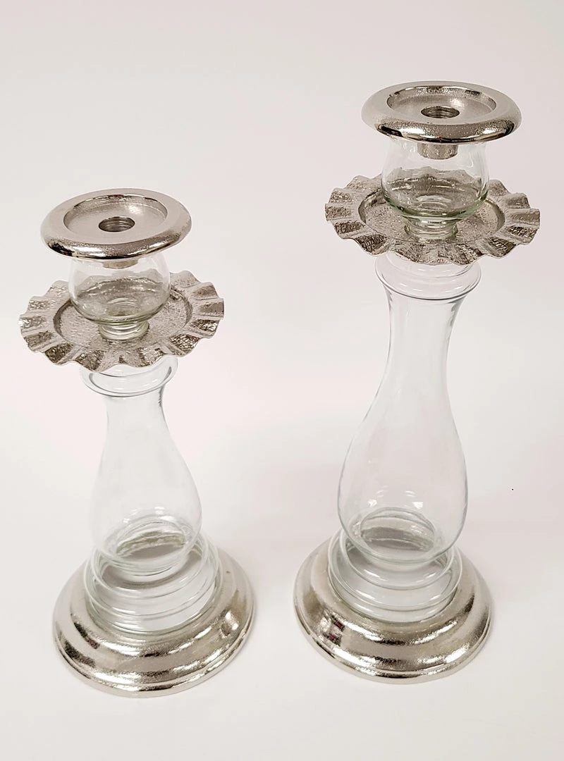 Description: These gorgeous rippled candle holders come in two sizes and will bring a beautiful style anywhere you place them. Available in Gold and Silver. Priced individually.