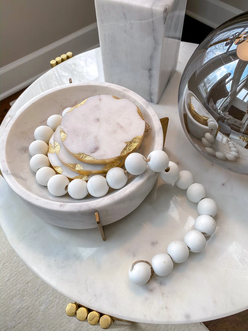 Description: This marble bowl sits on a gold stand and has such a sleek yet modern look. We love to mix gold with marble and this brings both!