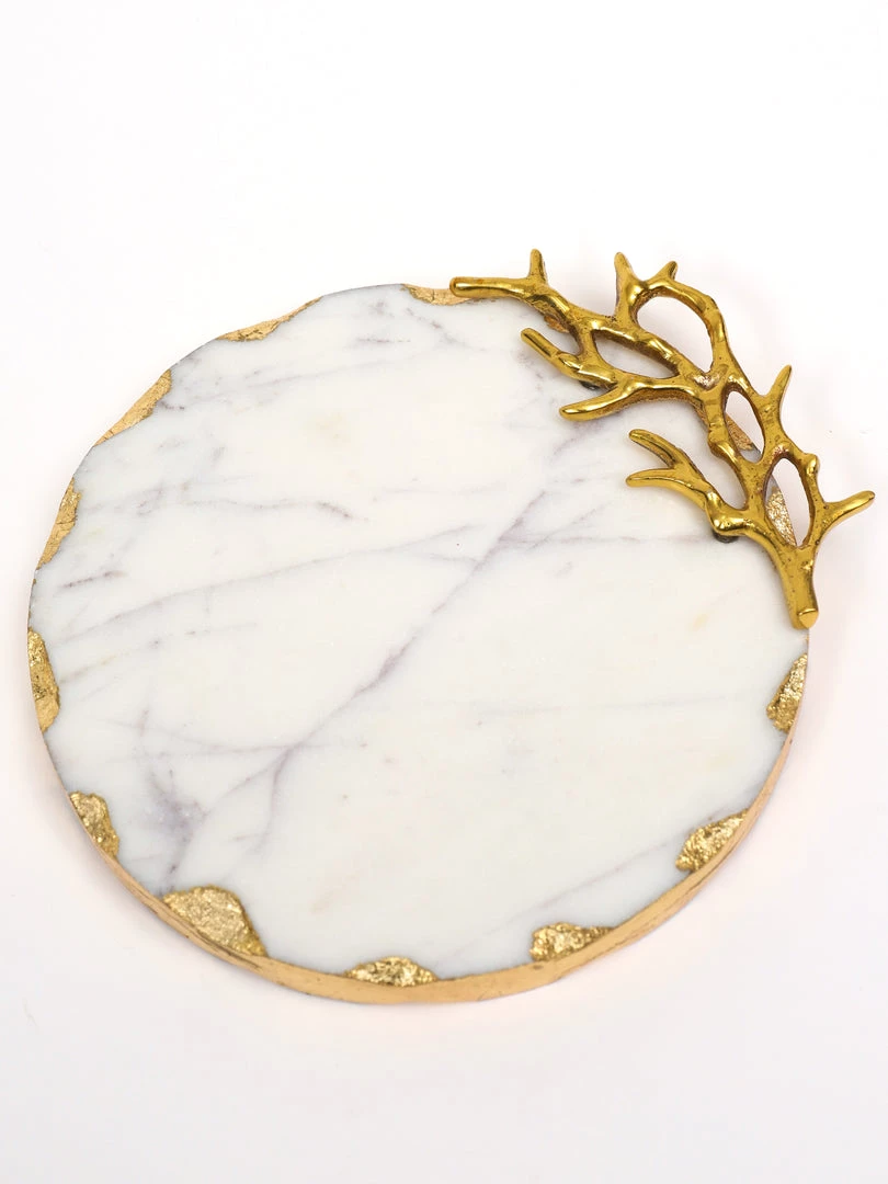 Description: This marble trivet is perfect to place a candle on or use it as a coaster. It is perfect to use on your coffee station or add it to any vignette in your home!