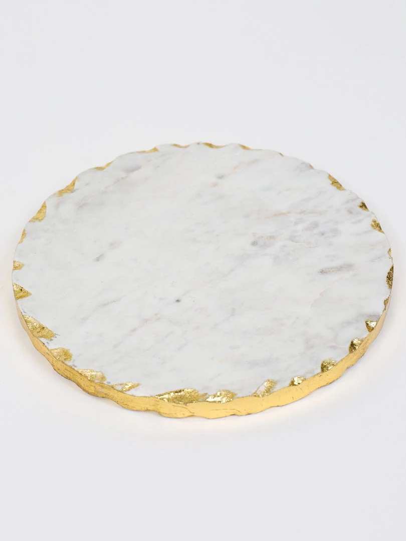 Description: This marble board with its gorgeous metallic finish can be used for serving or decoration.