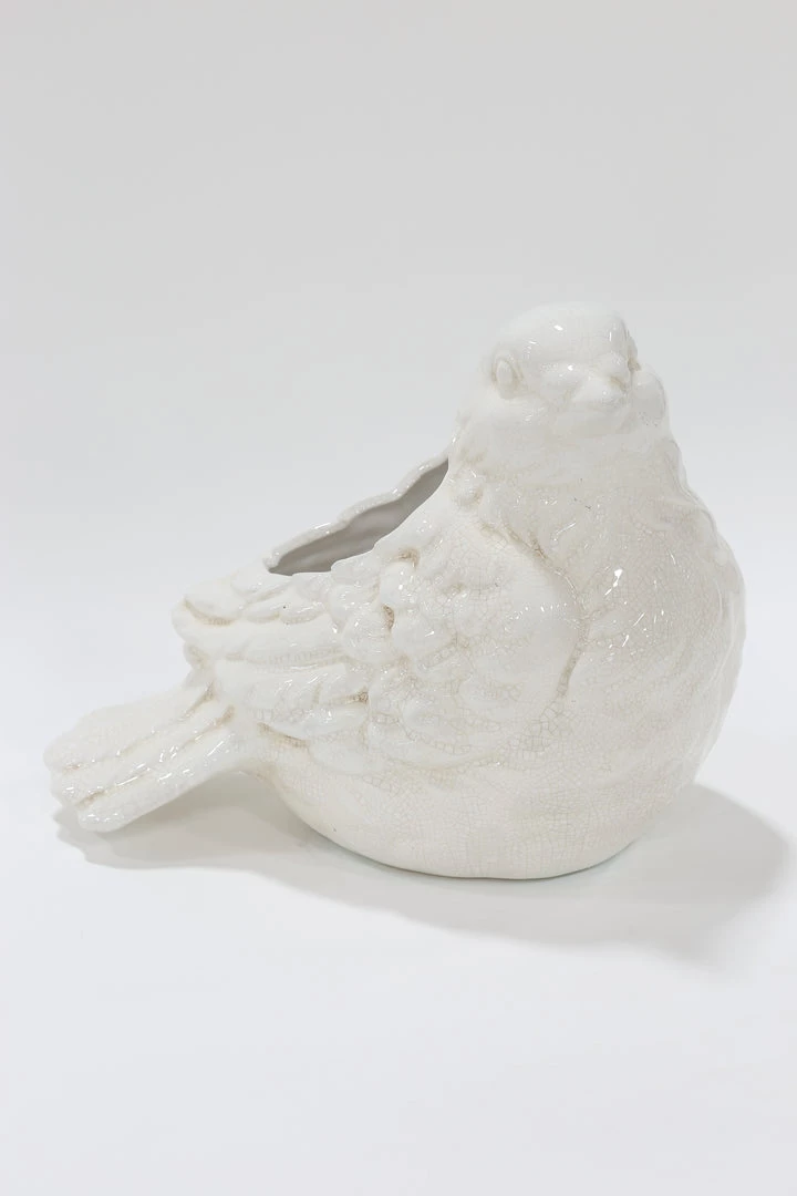 This significant crackle bird pot is perfect to put outside with your favorite plant or flowers! We love the crackle finish with the creamy white color!