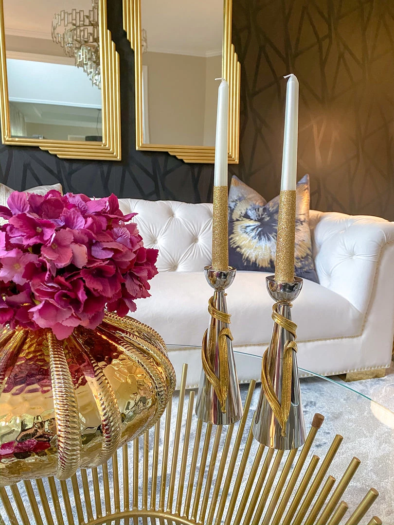 This set of candlesticks is stunning and will match perfectly back to our willow leaf decor!
