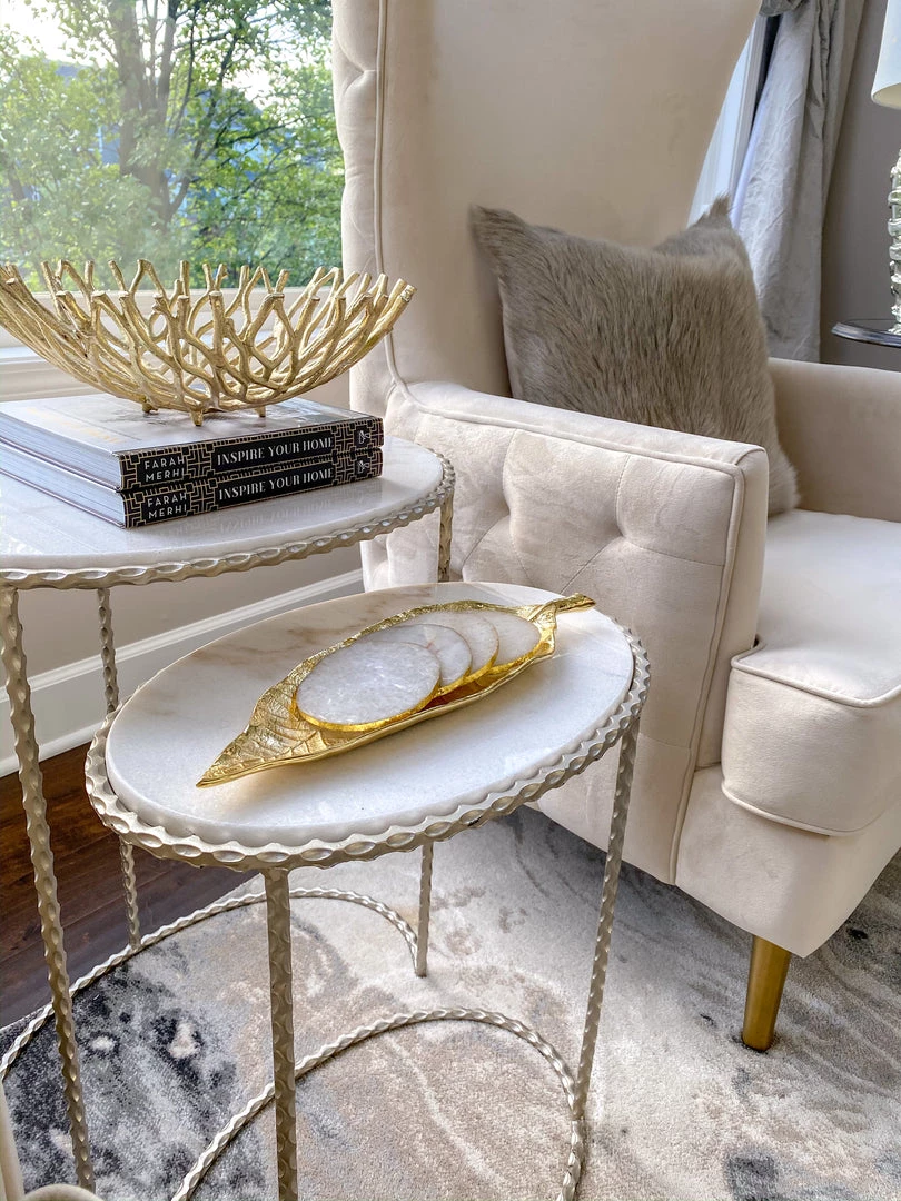 Inspire Me! Home Decor Round Marble Tray With Gold Edge And Metal Details