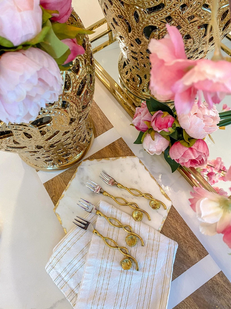 These elegant forks are perfect for snacks and feature a beautiful foral leaf design on the handle!
