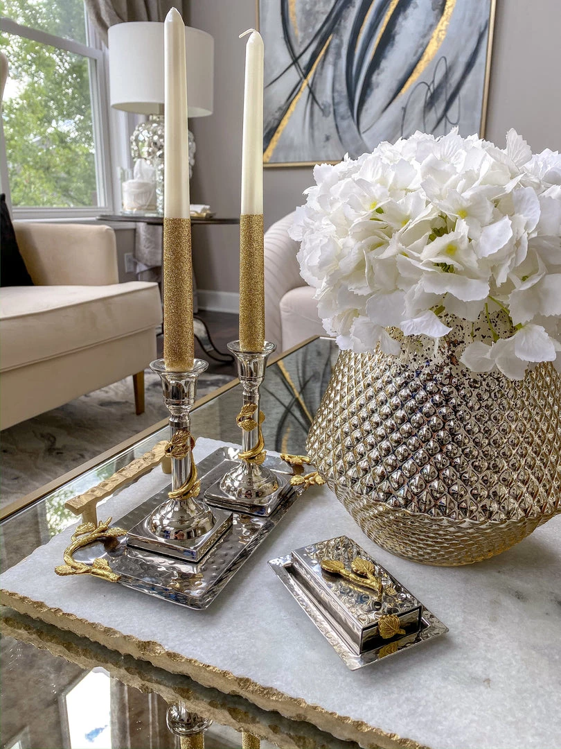 Inspire Me! Home Decor White Ceramic Candle Holder With Gold Elegant Details (2 Sizes)