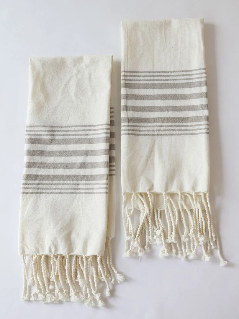Description: These soft dish towels are perfect for your kitchen! Available in two different neutral colors, they will blend with any existing home decor and add a cozy vibe to your home!