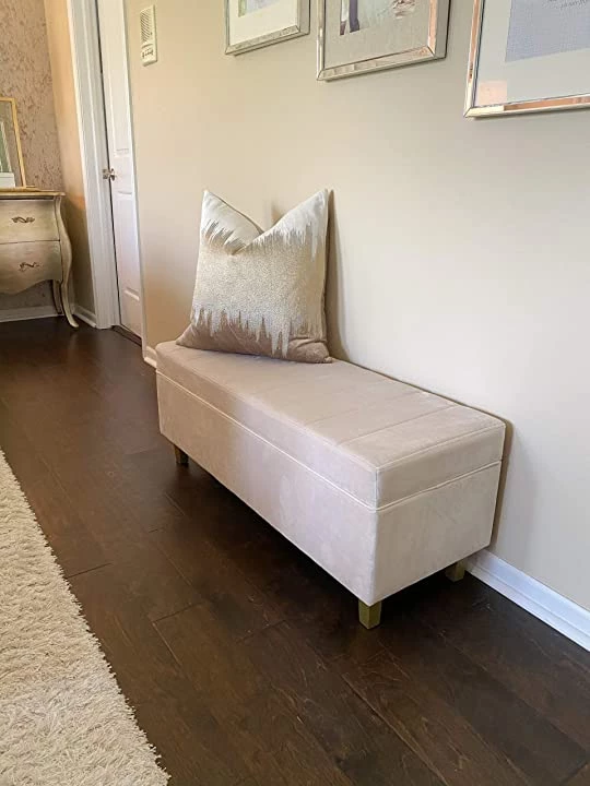 Bench. This luxurious velvet storage bench offers