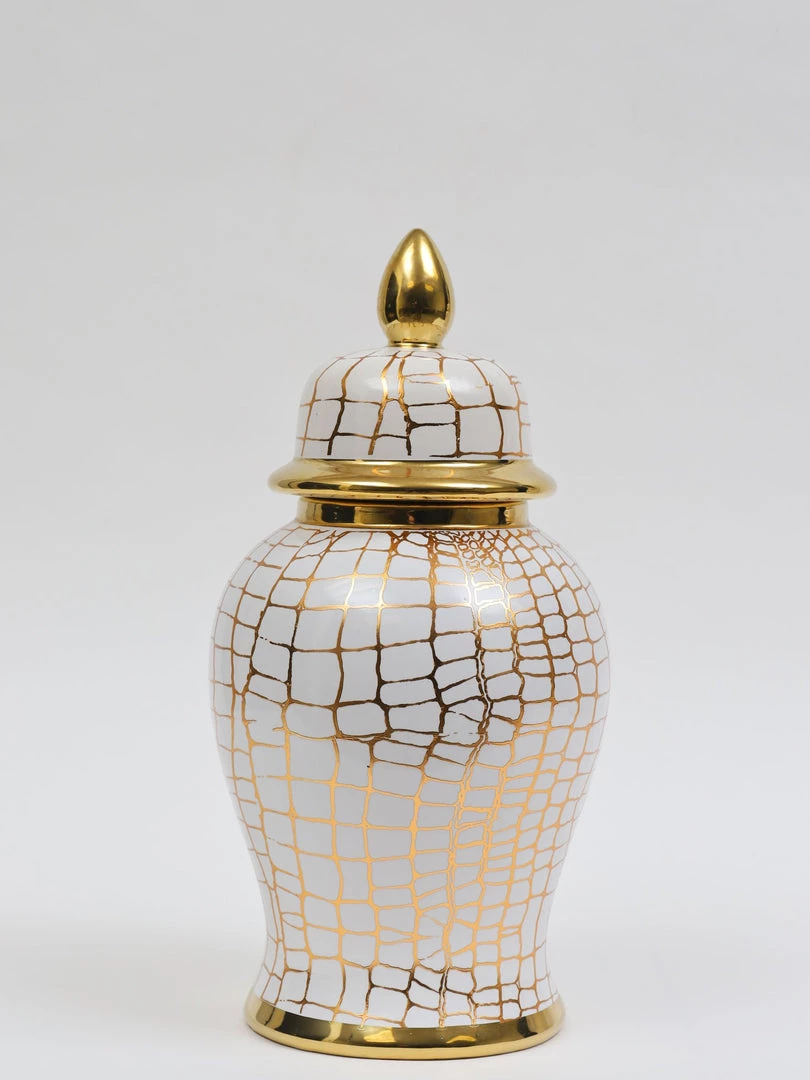 Description: This exotic ginger jar will look stunning on its own or filled with your favorite faux florals.