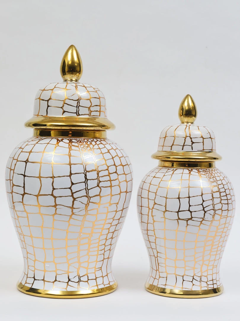 Inspire Me! Home Decor White Ceramic Jar With Elegant Gold Details (2 Sizes)
