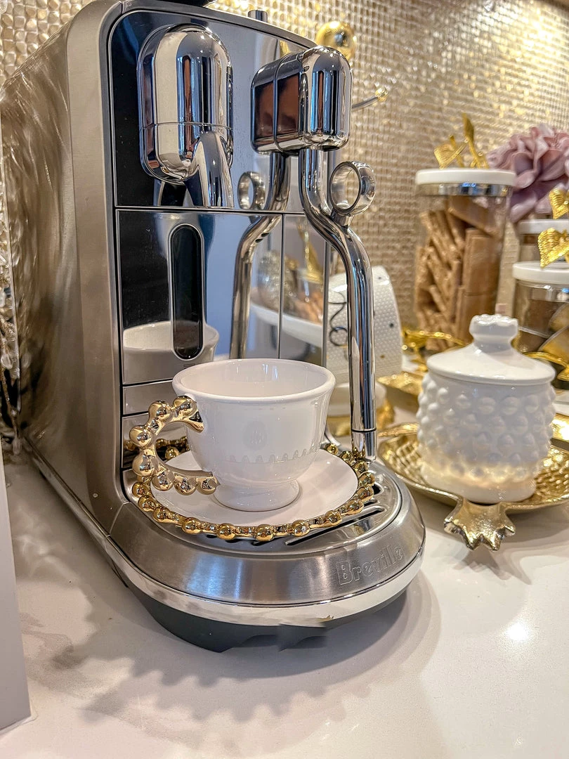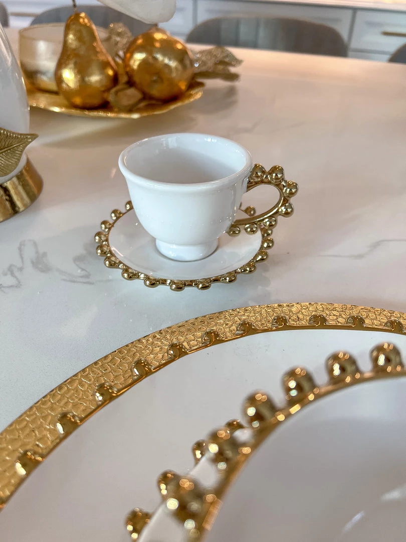 Description: This gold and white Espresso set with its gold beaded trim is absolutely stunning.